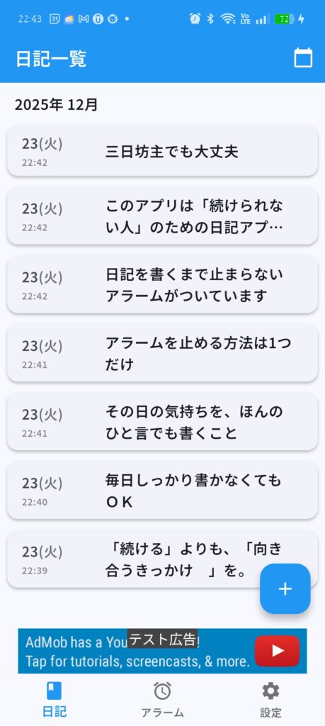 これはシンプルな日記アプリです