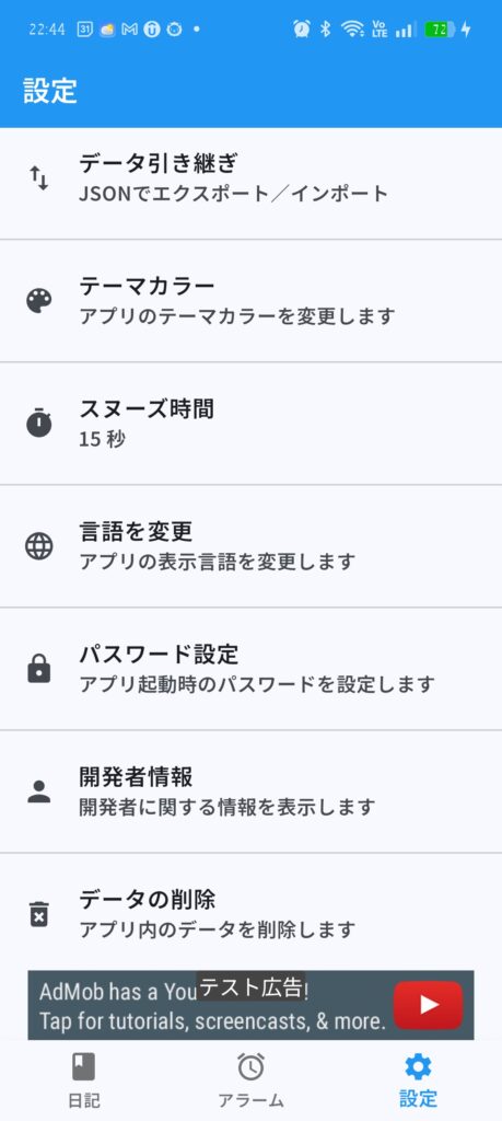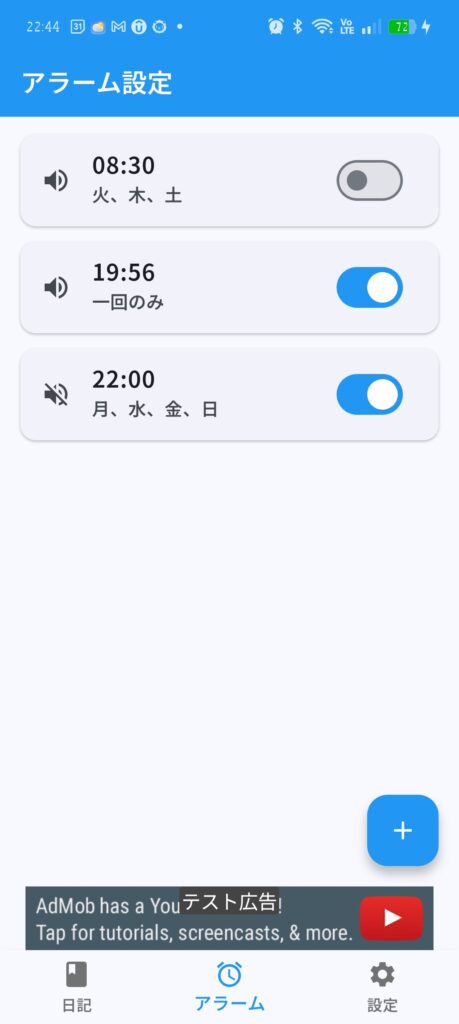 このアプリには、日記を書くまで止まらないアラームがついています。